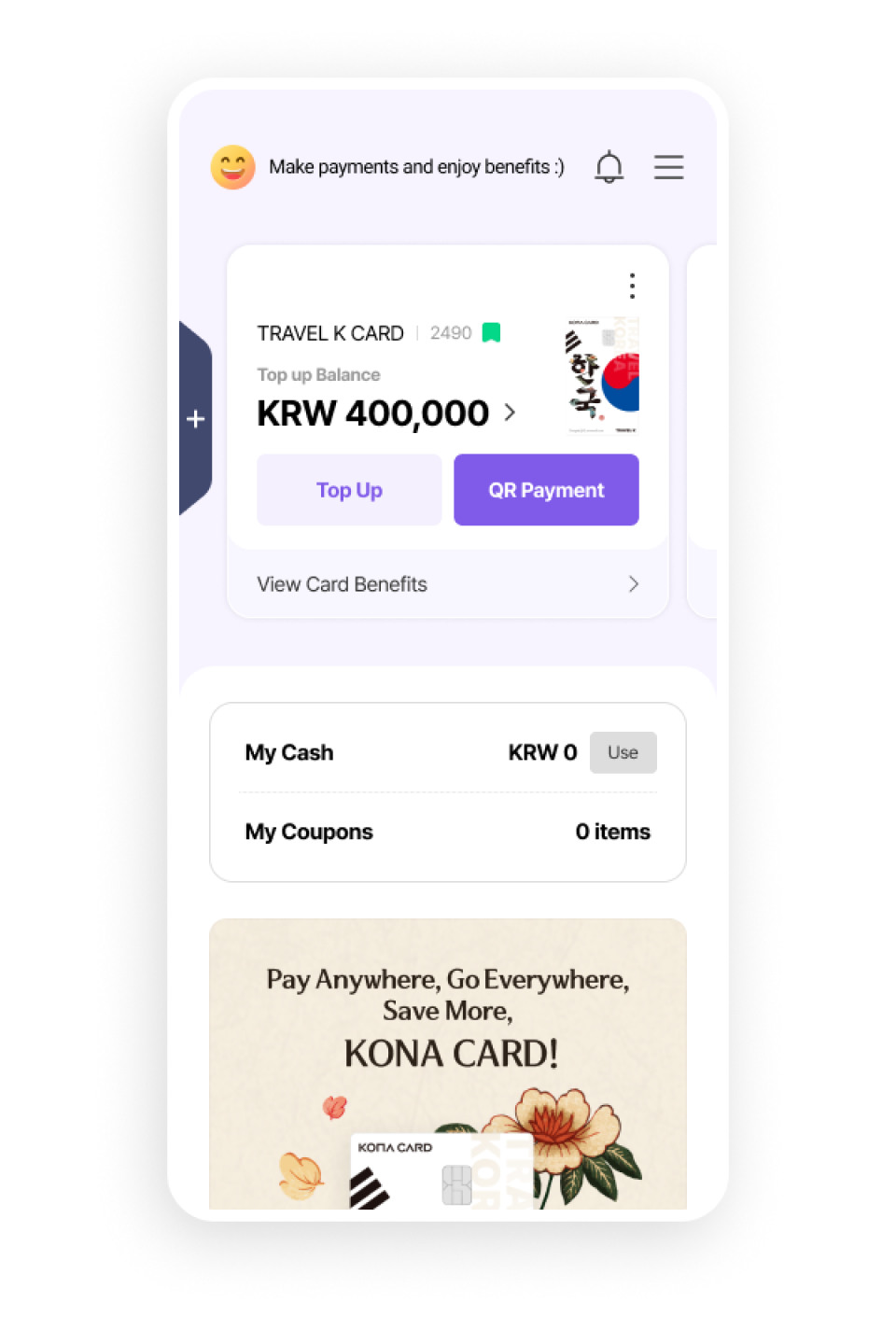 코나카드 앱과 함께 다양한 기능을 사용하세요.