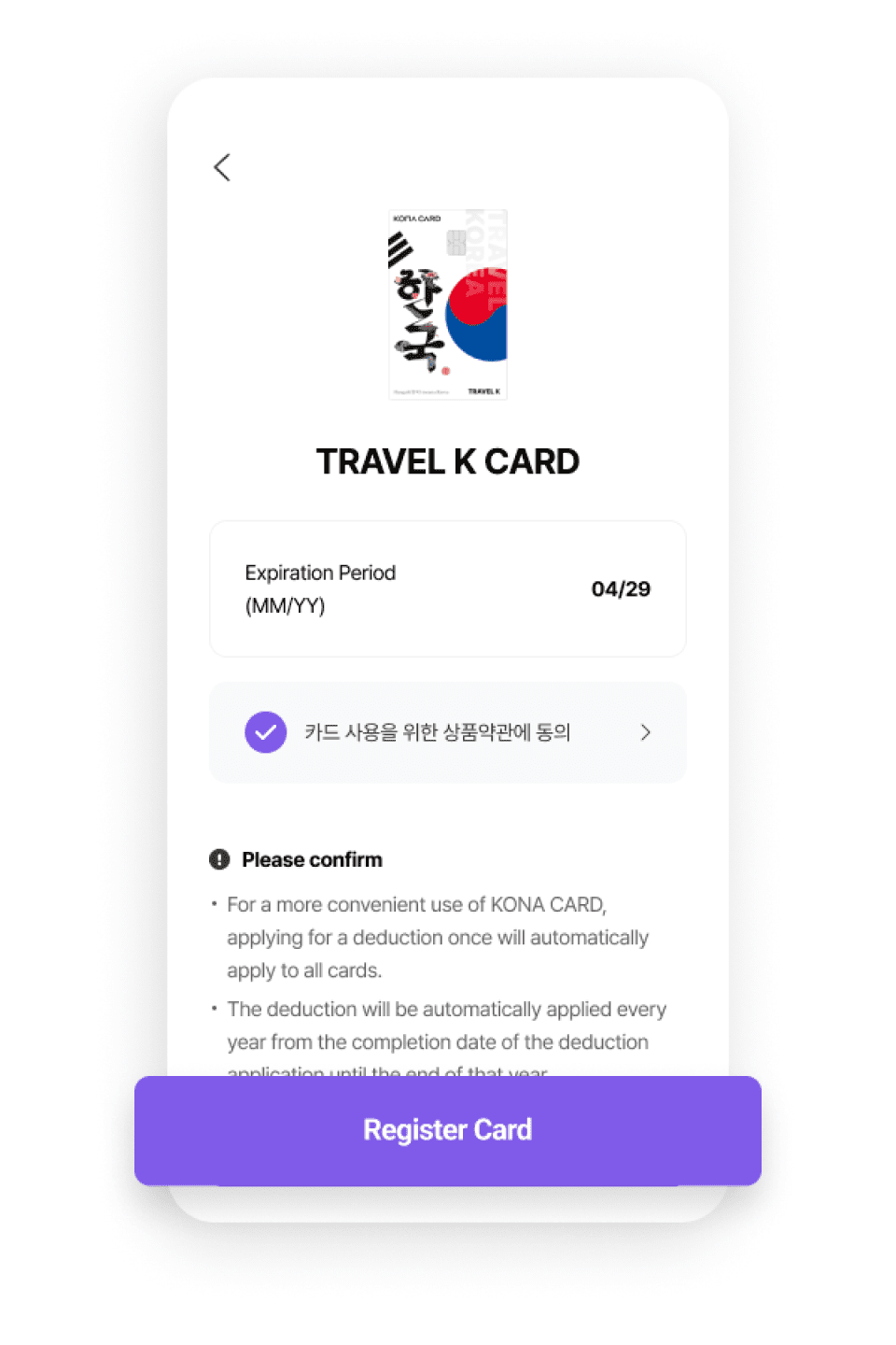 약관 동의 후 카드 등록 버튼을 눌러주세요.